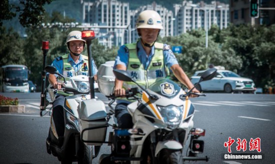 圖為蕉城各街道路口,交警們頭頂烈日,守衛(wèi)交通安全。 阮傳龍 攝