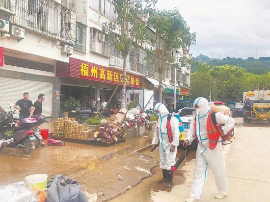 臺(tái)風(fēng)“盧碧”帶來連續(xù)大暴雨,福州部分區(qū)域出現(xiàn)內(nèi)澇。各地全力組織防汛救災(zāi)和災(zāi)后重建工作。圖為7日,專業(yè)消殺隊(duì)伍在福州高新區(qū)進(jìn)行消殺工作。吳旭濤 陳天然 黃建能 攝