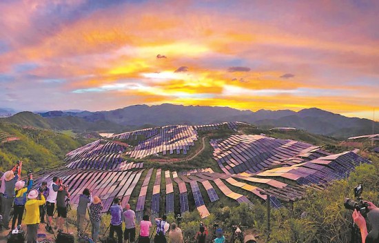 松溪縣舊縣鄉(xiāng)光伏電站,連片的光伏發(fā)電板在夕陽映照下熠熠生輝。 李典利攝