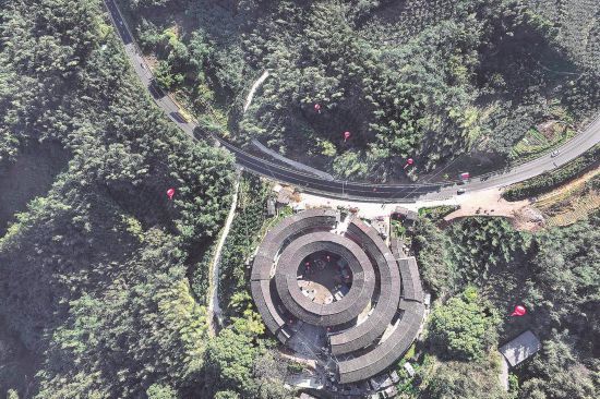 福建土樓,體現(xiàn)了人居條件和自然環(huán)境的和諧統(tǒng)一。記者 林輝攝
