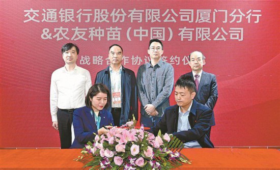 廈門(mén)交行與農(nóng)友種苗(中國(guó))有限公司簽訂戰(zhàn)略合作協(xié)議。黃曉珍攝