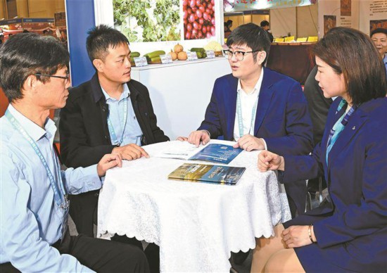 農(nóng)博會(huì)現(xiàn)場(chǎng),廈門(mén)交行工作人員走近展商,推介優(yōu)質(zhì)金融產(chǎn)品,精準(zhǔn)提供服務(wù)。黃曉珍攝