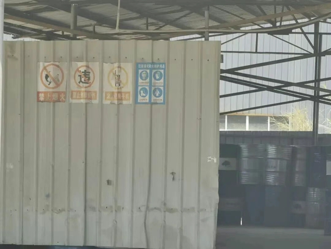 2025年9月16日,執(zhí)法人員檢查發(fā)現(xiàn),該公司在甲類車間利用原有鐵棚,違規(guī)進(jìn)行半包圍,用于存放醇酸樹脂等原料空桶。