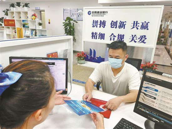 廈門建行客服經(jīng)理向客戶介紹建行融資產(chǎn)品。