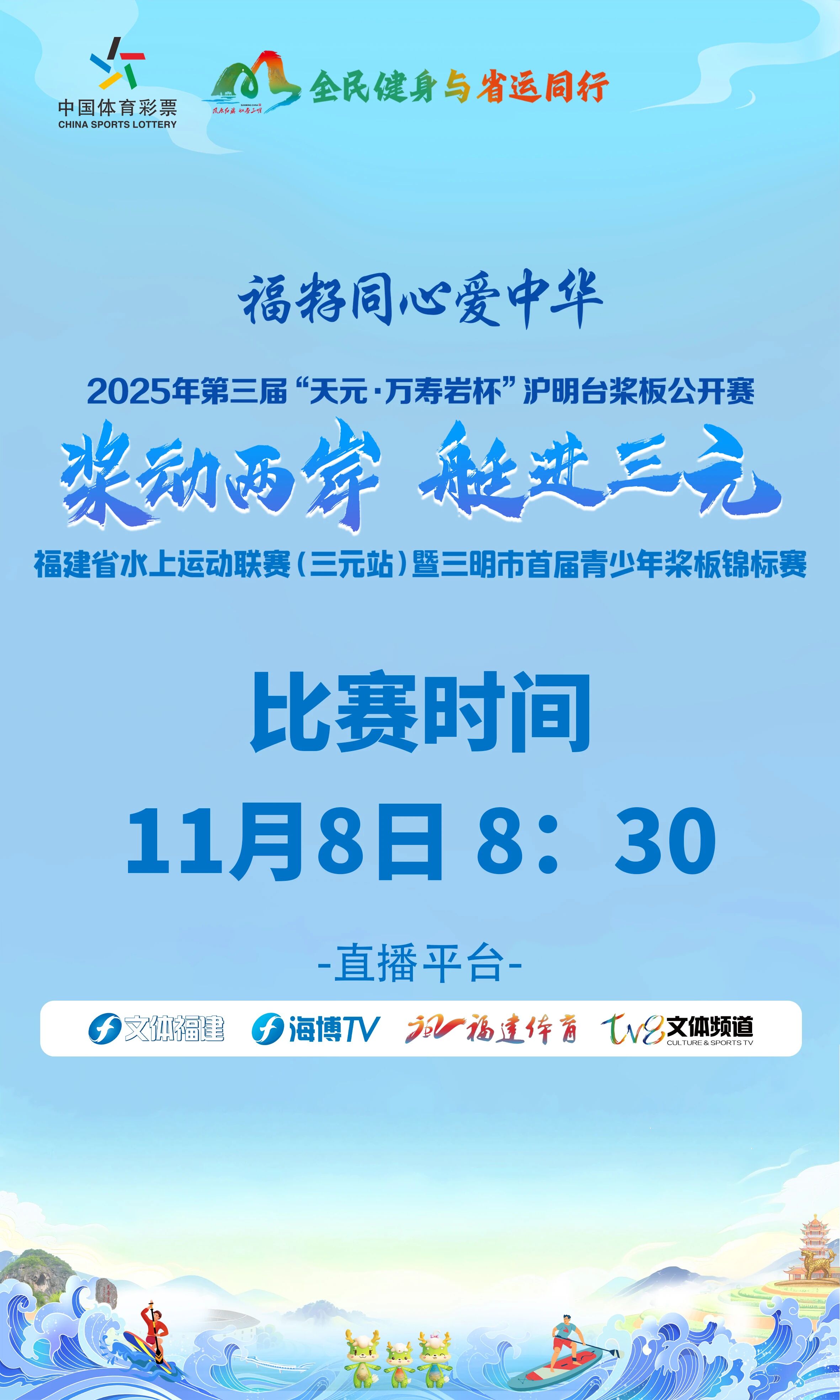 2025年福建省水上運動聯(lián)賽(三元站)暨三明市首屆青少年槳板錦標賽將于11月8日開賽