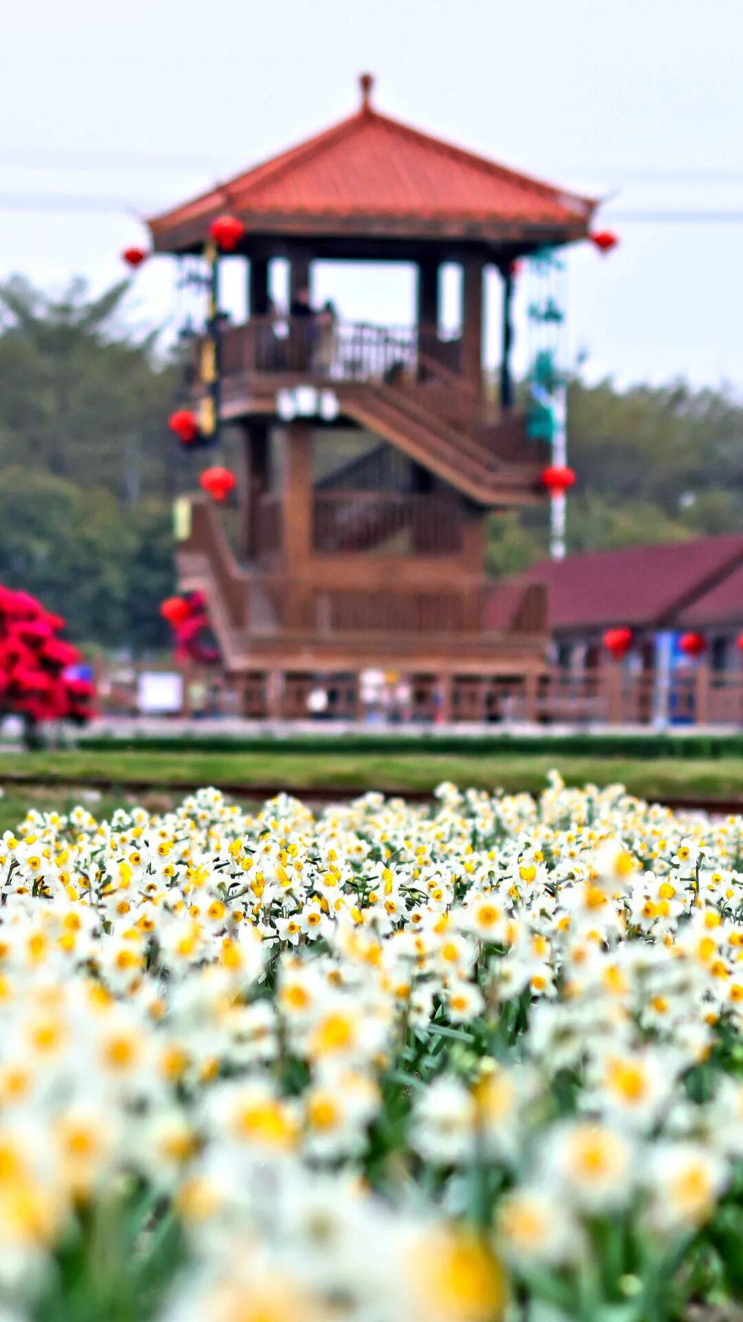 發(fā)間水仙與紅磚古厝相映成趣